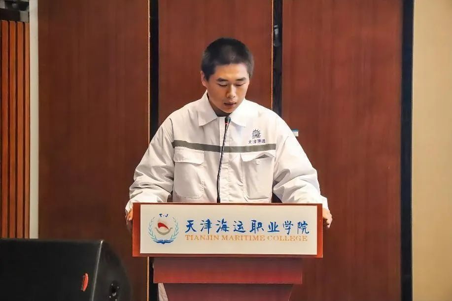航海23-7班陈信君代表2023级订单班全体同学感谢学院和企业为同学们搭建的学习平台,表示将以此为起点,安心学习、勤于思考;珍惜机会、严守纪律;加强交流、增进了解,彼此相互帮助、相互学习、共同提高,逐梦深蓝,扬帆远航。