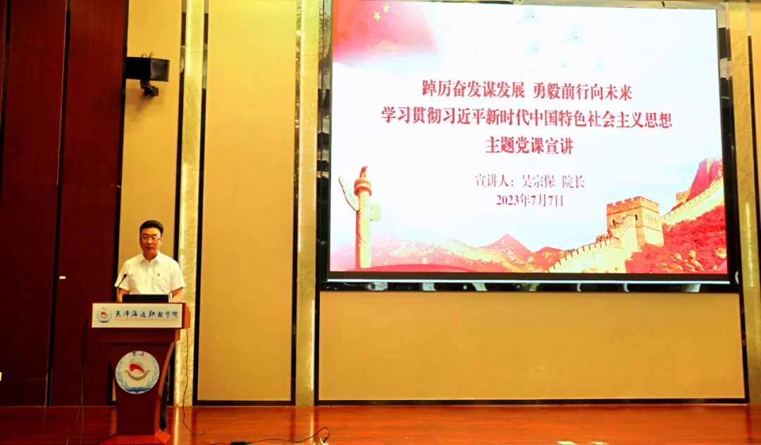 为扎实推进学习贯彻习近平新时代中国特色社会主义思想主题教育,7月7日,学院院长吴宗保同志带头为党员干部讲授专题党课,市委主题教育第二十六巡回指导组有关同志到会指导。学院各党支部书记、航海技术系党支部、办公室-国际交流处联合党支部、工程技术系党支部全体党员参加宣讲大会。