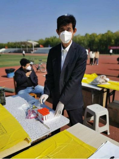 自学院开展核酸检测以来,他放弃节假日休息,不惧严寒酷暑,早出晚归,提前联系对接采样医务人员、领取核酸采样物资、科学设计检测通道,做好筛前准备工作。待核酸检测结束后,他还要收集统计采样管数和核酸人数,扫码送检,检测工作零差错。