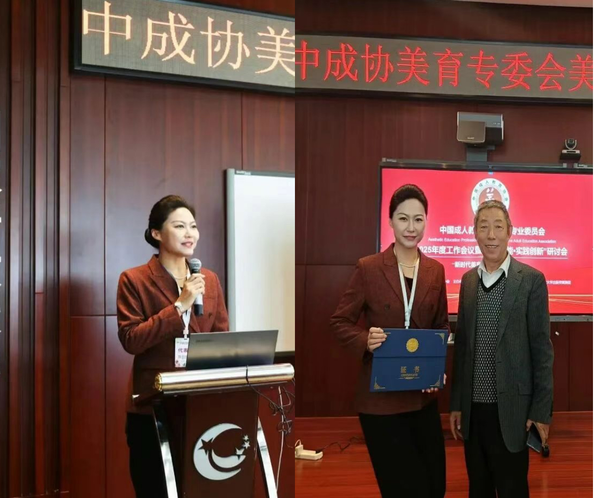 近期,在中国成人教育协会指导,中国成人教育协会美育专业委员会主办的美育典型案例征集活动中,我院基础教学部申报的案例《礼育铸魂 美润匠心:高职院校“大美育”浸润模式的构建与实践》经专家评审,被评为优秀案例。礼仪教研室主任昃丽娜老师受邀参加了中国成人教育协会美育专业委员会2025年度工作会议暨“美育赋能·实践创新”研讨会,并在平行论坛上作了主旨发言,系统介绍了我院将“礼仪教育”写入办学方针,将中华优秀传统文化转化为独特的教育资源,以“礼仪美育”为特色、构建“大美育”浸润模式的实践路径与育人成效,获得了与会专家和同行的高度认可。