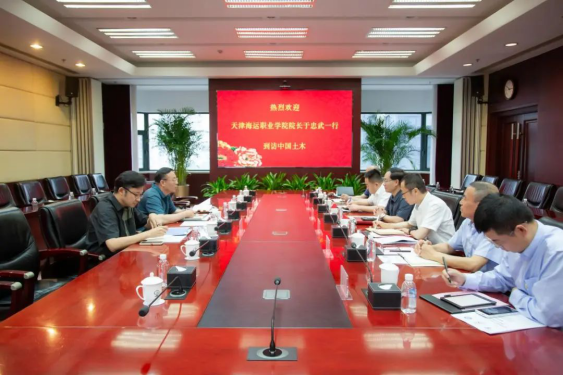 为深化校企合作,前瞻性应对中亚区域物流量激增及物流枢纽建设加速对复合型多式联运人才的迫切需求,8月8日,天津海运职业学院院长于忠武,航运经济系教师赵倩儒、张楠一行赴中国土木工程集团有限公司(以下简称“中国土木”)进行调研交流。中国土木党委副书记孙湘春、人力资源部总经理曹廷伟、中土海外人力资源公司总经理王琦、中土轨道运营公司副总经理赵要武、人力资源部副总经理苗剑、人才人事岗经理何晓蕾、轨道运营公司市场经营部经理董舜等出席座谈会。