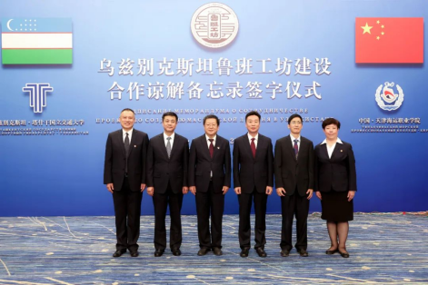 2022年7月29日,在中乌建交30周年这一重要历史节点,天津海运职业学院与乌兹别克斯坦塔什干国立交通大学,在“云”端签署乌兹别克斯坦鲁班工坊建设合作谅解备忘录。这标志着乌兹别克斯坦鲁班工坊正式启动建设。塔什干国立交通大学校长O.K.阿布杜拉赫曼诺夫、副校长图拉耶夫•巴霍吉尔,乌兹别克斯坦中国企业商会执行会长刘羽,天津海运职业学院党委书记张建成、院长吴宗保及学院领导班子成员、各部门负责人,乌兹别克斯坦中国企业商会会员企业代表参加签约仪式。签约仪式由塔什干国立交通大学副校长图拉耶夫•巴霍吉尔主持。
