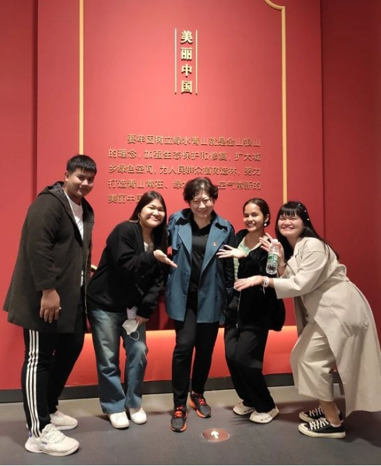来自泰国的留学生们站在“美丽中国”的展板前,认真学习“美丽中国”四个汉字。他们纷纷表示此次参观研学加深了对中国共产党的认识,他们非常喜欢美丽的中国,一定在中国努力学习知识,成为中外文化交流的使者。
