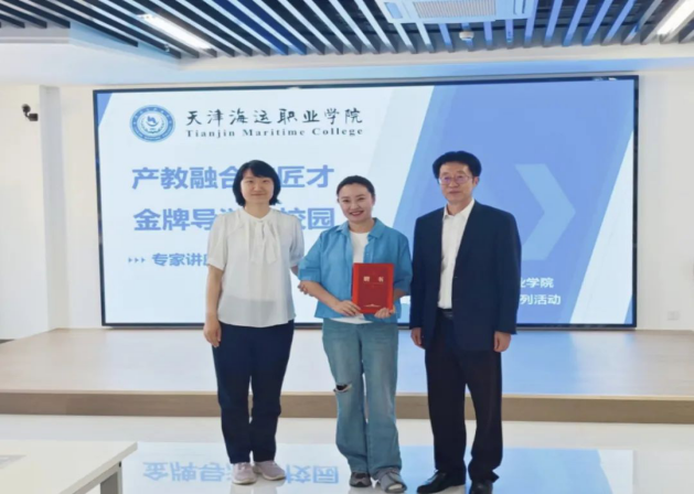 邮轮旅游系党支部书记单朝辉为林菲颁发“天津海运职业学院技能大师”聘书。此次聘任是学院深化产教融合、推进校企协同育人的创新举措,通过引入行业顶尖技能专家参与专业建设和教学改革,助力打造具有国际竞争力的邮轮目的地文旅人才高地。