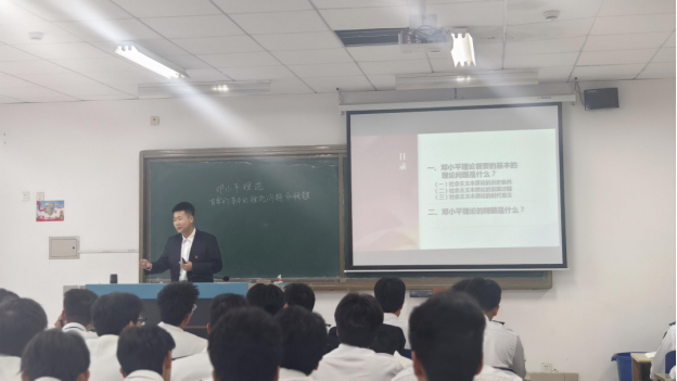 张鑫老师围绕《毛泽东思想和中国特色社会主义理论体系概论》第六章第一节“邓小平理论首要的基本的理论问题和精髓”进行了深入浅出地讲解。他巧妙地以2024年为纪念邓小平同志诞辰120周年而特别发行的邮票作为课程导入,吸引了在场师生的注意力。通过情景演绎、课堂探究以及红色电影融入等方法将抽象的理论知识转化为生动有趣、贴近学生实际的教学内容,赢得了在场师生的一致赞誉与好评。