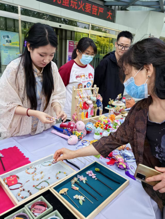 “中国旅游日”期间,应津南区文化和旅游局、天津市文化馆邀请,基础教学部(体育部)带领数学文化社、熙华古服饰社团的学生,参加津南区“津彩南望・美好旅程”主题活动。学生们自发担任文化讲解员,向参观人员普及非遗知识,成为一道亮丽的“文化风景线”。在2025年天津市文化馆服务宣传周活动上,我院学子带来的个性展品展现了年轻一代的创意力量,吸引市民驻足体验。