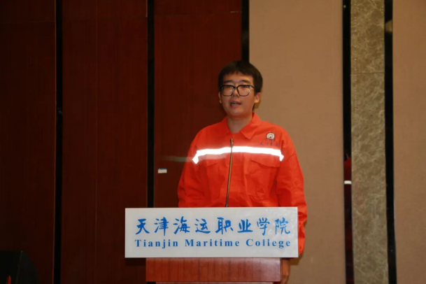 航海技术系党总支副书记程文阁致辞。他结合多年航海教育经验,勉励新生珍惜校企合作平台,夯实专业基础,锤炼航海精神,未来成为行业栋梁。天津市惠通海员管理服务有限公司总经理杨克杰讲话。他从行业视角出发,强调航海事业对国家发展的重要性,并承诺企业将全力支持订单班培养工作,为学生提供丰富的实践机会和广阔的发展空间,共同培育出更多优秀的航海人才。订单班负责人、惠通海员公司副总经理王莹详细介绍了培养方案与校企协同机制。她表示,企业将全程参与课程设计、实训指导及就业对接,确保学生“学有所用、用有所成”。