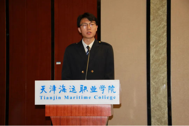 2023级订单班在校生代表航海23-7班周健楠分享了他的成长感悟,用“三份感谢”表达了对学院培养和企业支持的感激之情,并鼓励新生们珍惜机遇,努力学习,为未来的航海事业打下坚实的基础,为新生树立了鲜活榜样。2025级新生代表轮机25-5班任宇翔以“三个决心”进行了分享,以扎实学识筑牢航海根基,以实干精神锤炼远洋本领,以团结品格凝聚船员力量,誓言以青春书写新时代航海人的答卷。