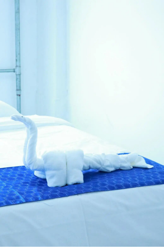 “毛巾花折叠技艺”环节充满创意与趣味。选手现场抽取一种毛巾花种类,在规定时间内完成创作。平凡的毛巾在同学们灵巧的双手中被赋予了生命,化身成为一只只优雅的“天鹅”、一头头憨态可掬的“大象”,或是一朵朵绽放的“玫瑰”。这一环节不仅是对学生手工技能的考核,更是对其空间想象力、艺术表现力及沉稳心态的综合锻炼,完美体现了邮轮客舱服务中为宾客创造惊喜与温馨的核心要义。
