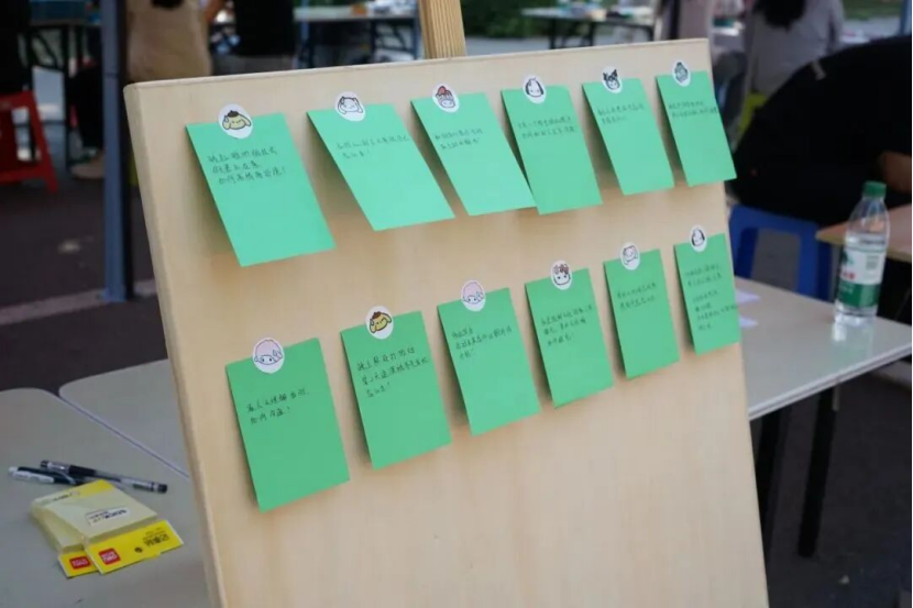 “情绪粉碎机”活动,同学们依托“情绪问题卡”,写下近期的烦恼和不快,并粘贴到“情绪展板”上,以宣泄内心的压抑,释放情绪。同时,志愿者组织学生现场体验“54321着陆法”,引导学生尝试通过调动感官体验,从焦虑、压力或情绪失控中快速回归当下,积极应对情绪危机。