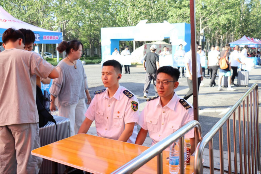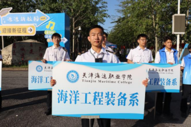 早上六点,院团委的学生志愿者们出发前往天津西站、天津站等人流密集的站点。他们手持“天津海运职业学院”欢迎牌,以笑容和周到的服务,为新生指引方向。